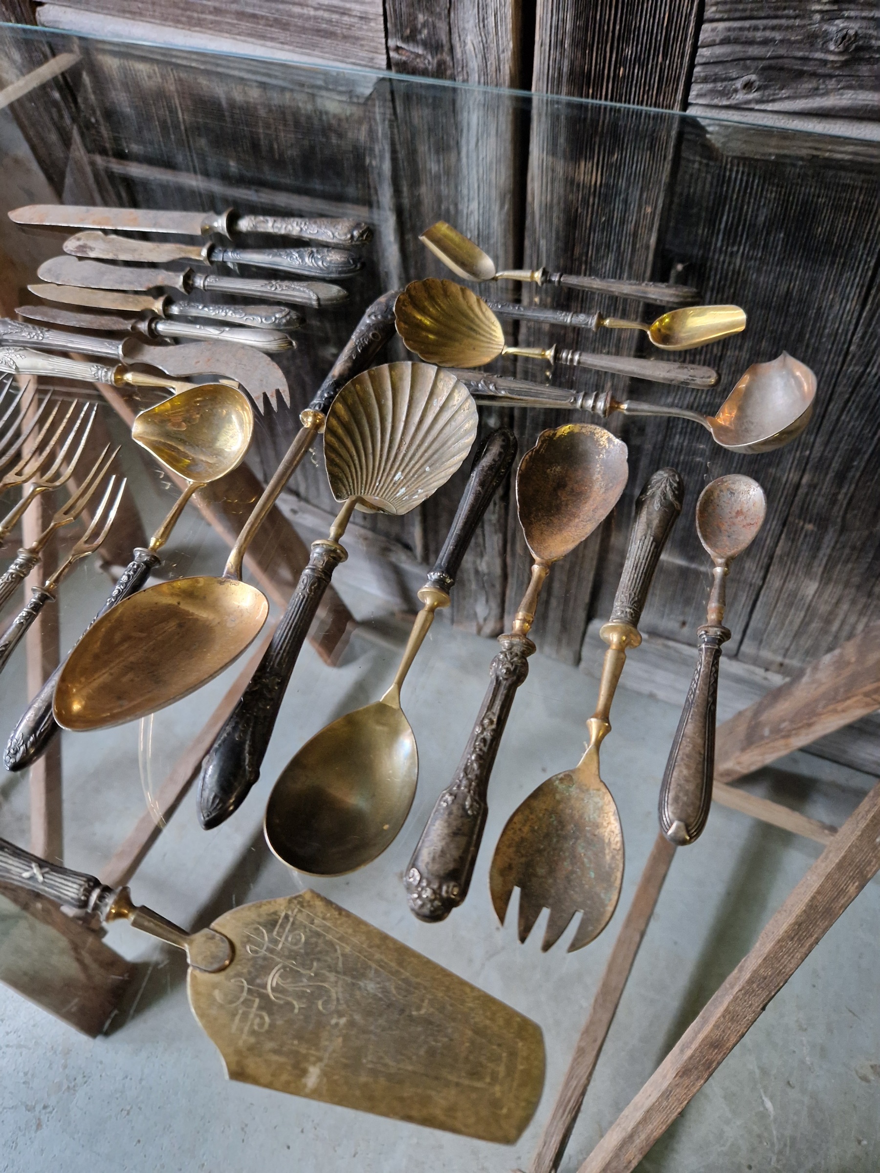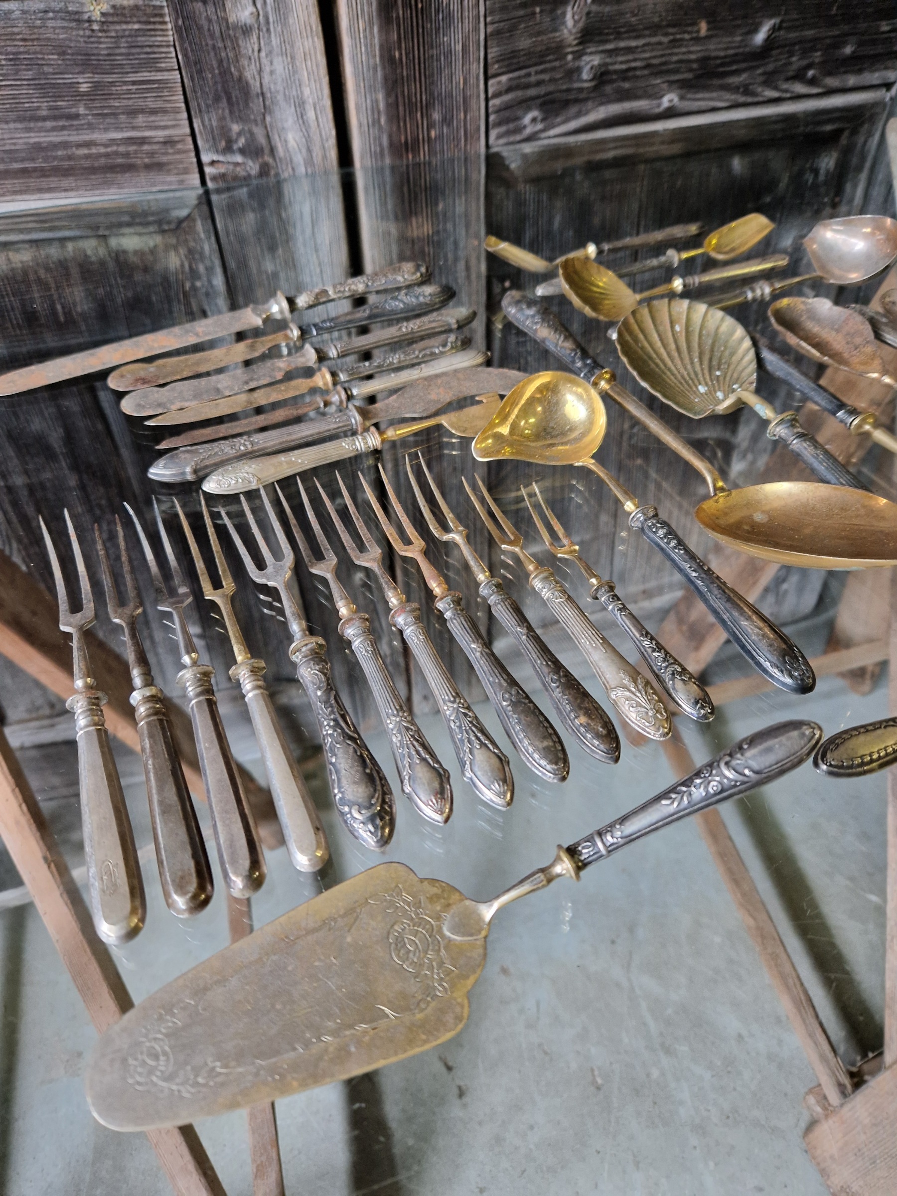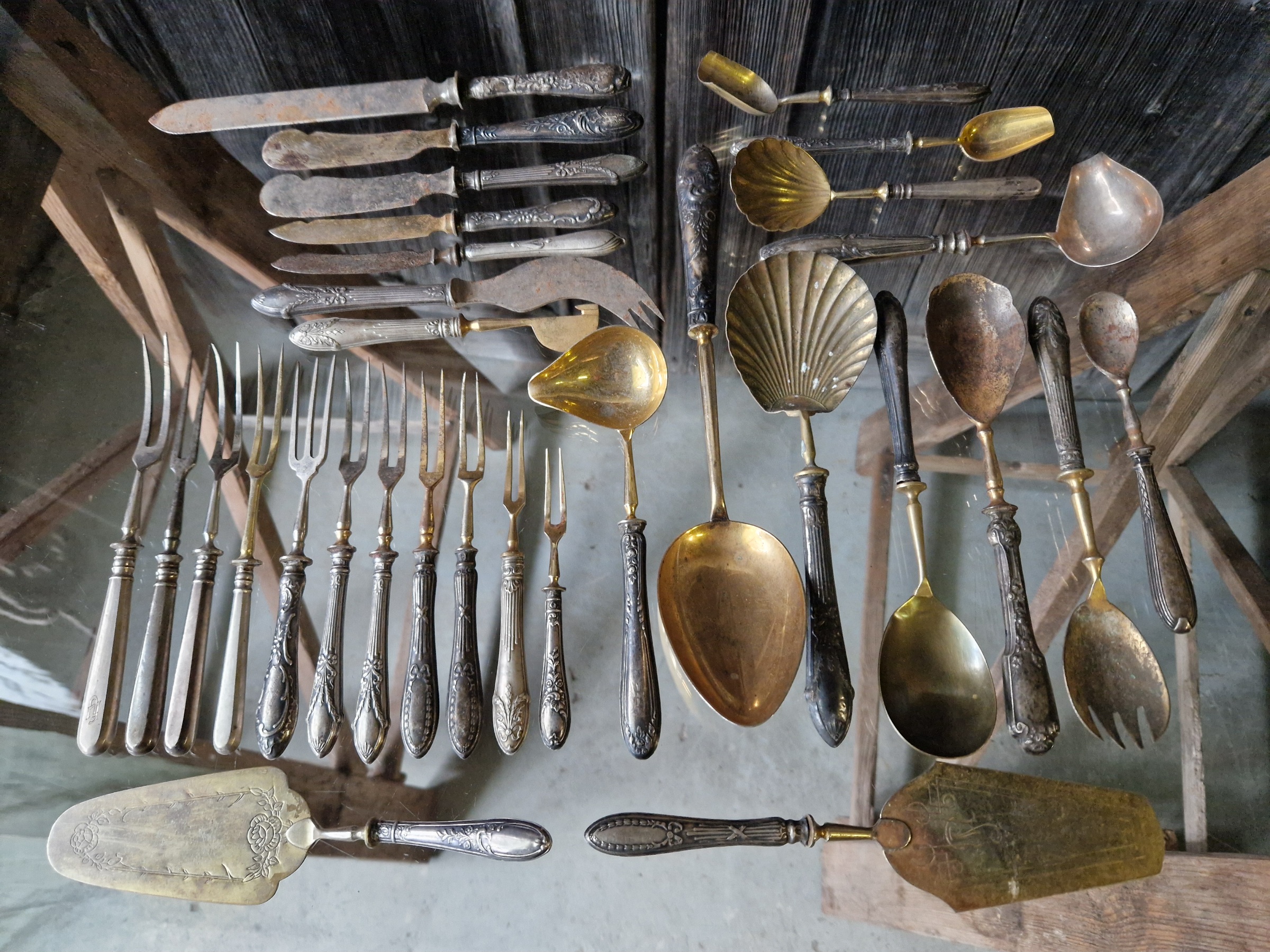 Hõbedast peadega serveerimisriistad -kahvlid, tordilabidad, suhkrulusikad jne.