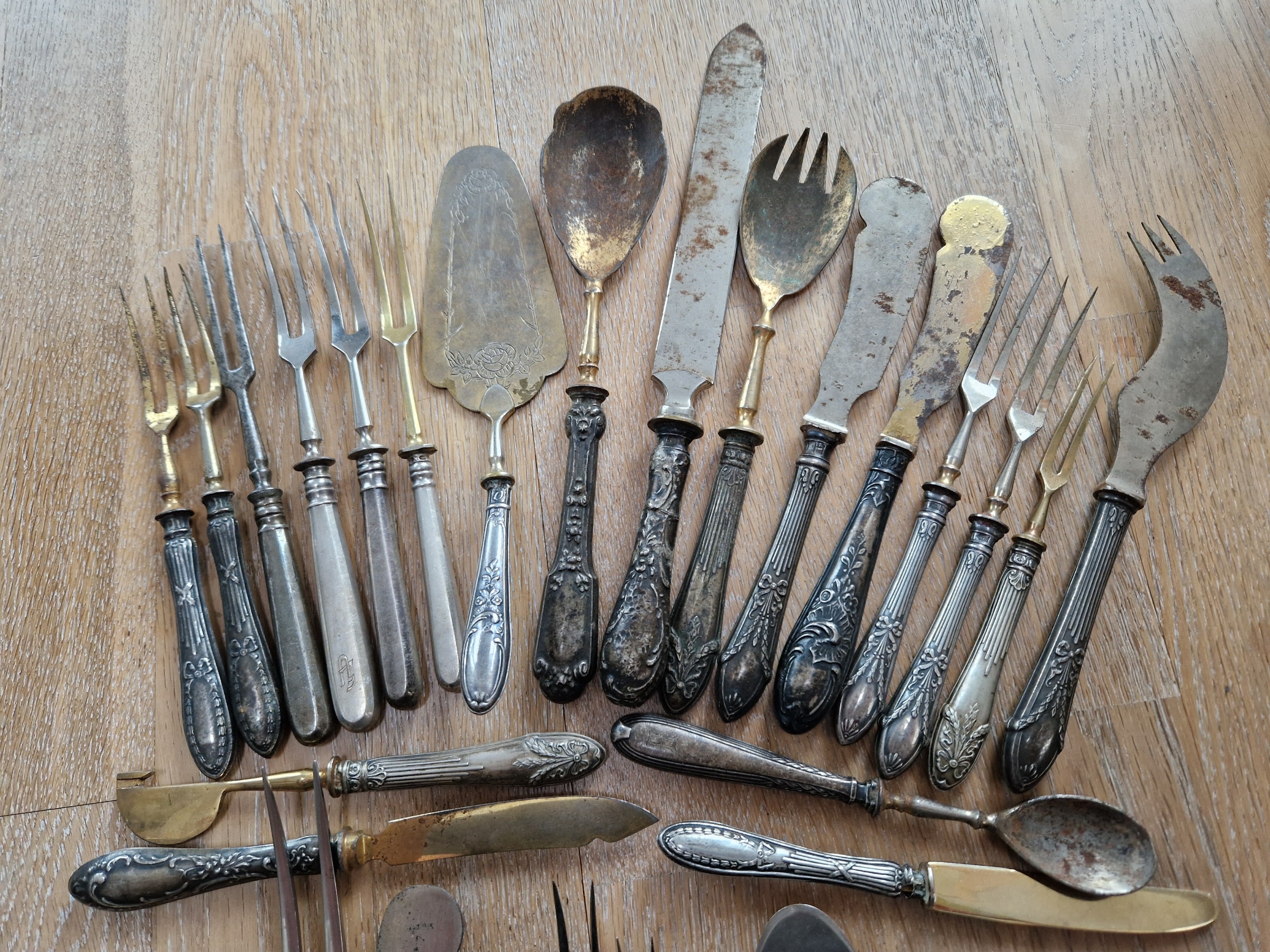 Lauahõbe/hõbedast peadega serveerimisriistad. Silverware